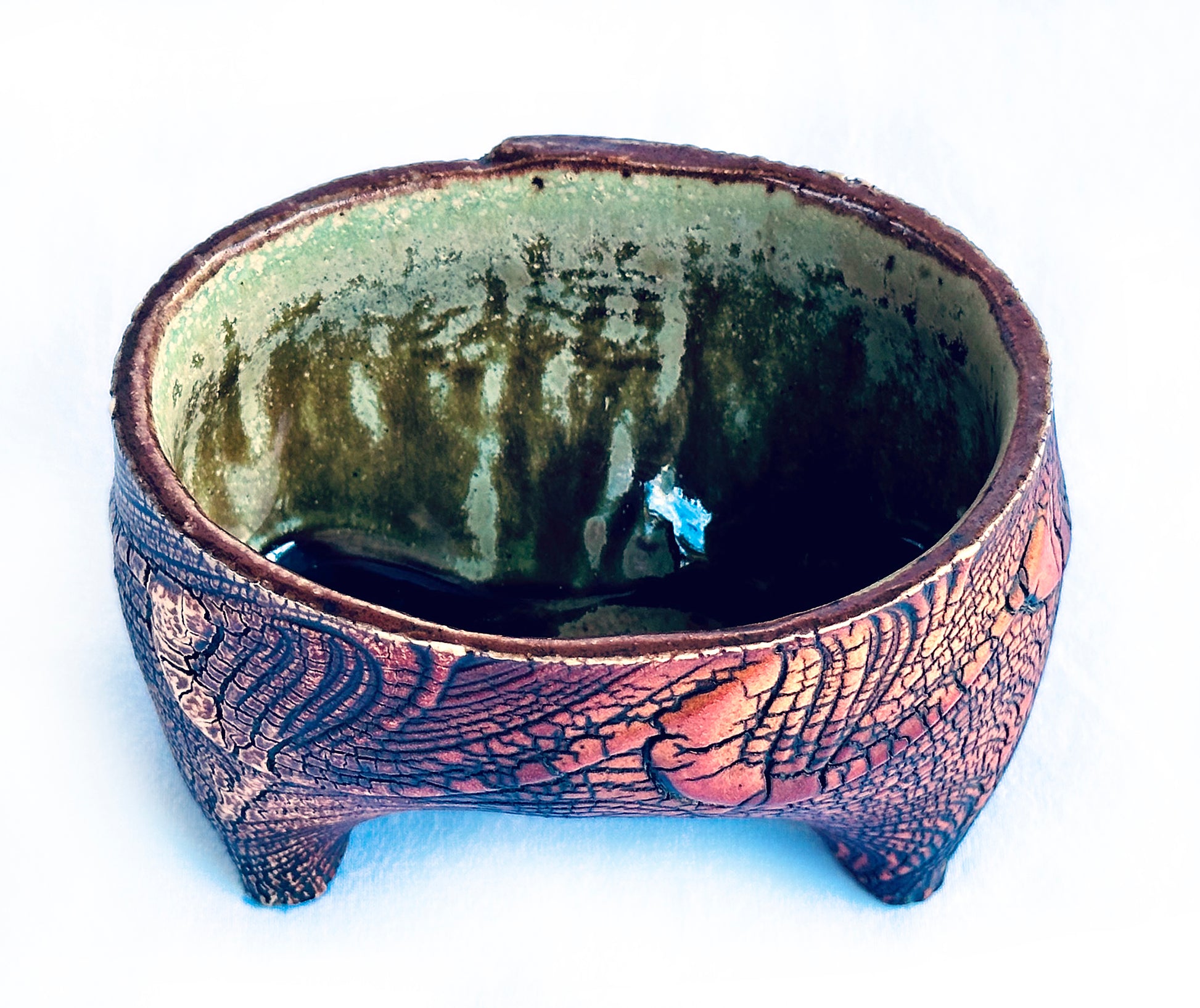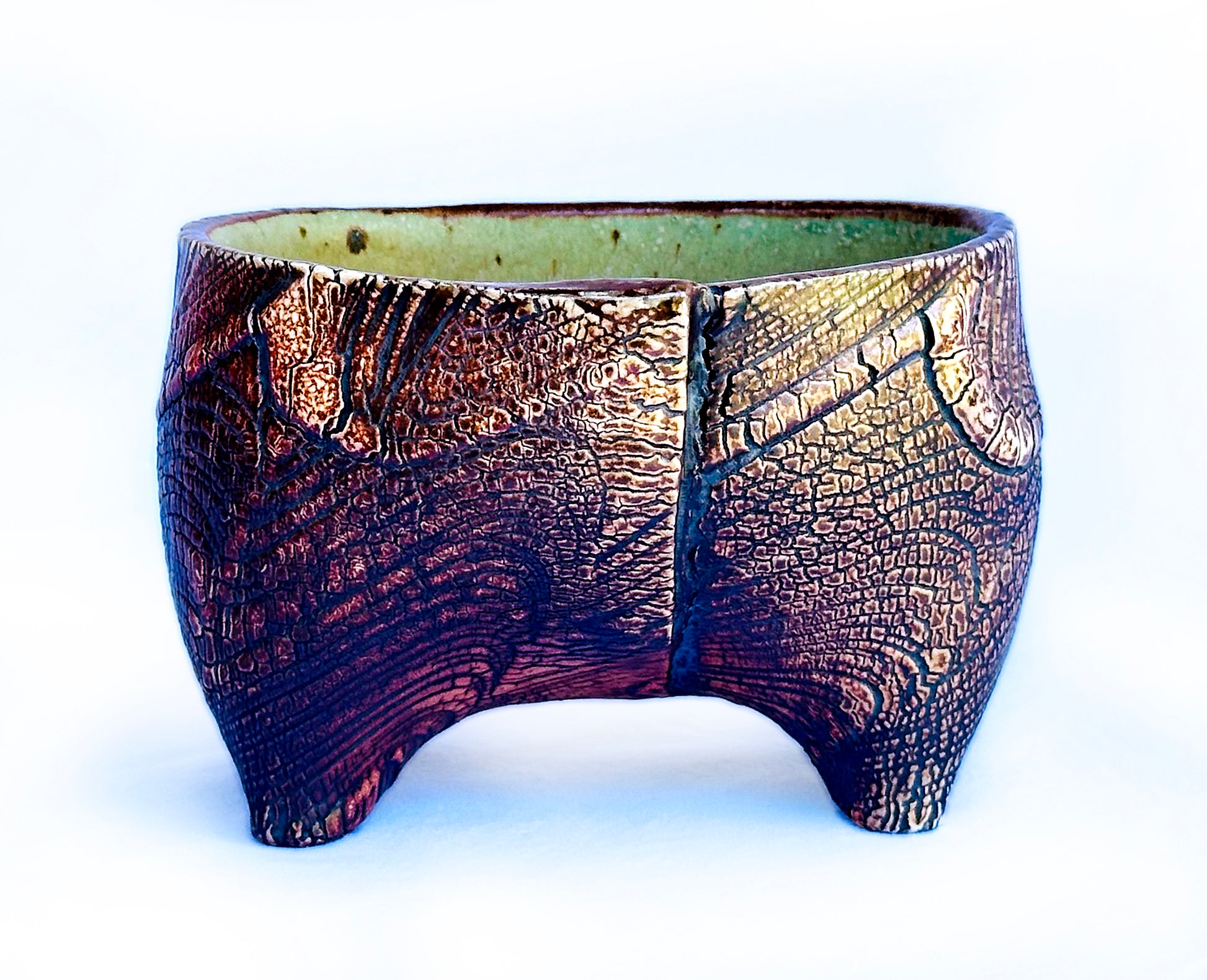This Pig Leg "Butaashi" vessel is a perfect container for your tea bags or miscellaneous items. Decorated with a bold, textured slip application and fired to a hot cone 10, this is a one-of-a-kind piece of ceramic art.